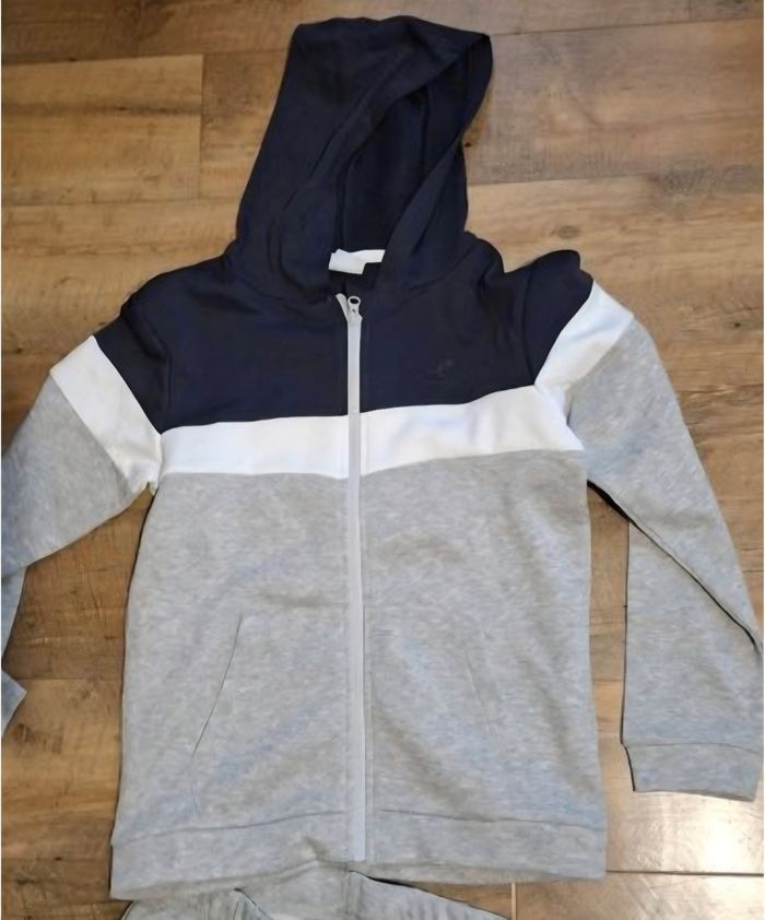 Je vends ce jogging gris de la marque Energetics pour enfant. - Type de produit : Jogging - Marque : Energetics - Taille : 12 ans / 152 cm - Couleur : Gris - Caractéristiques : Capuche, Fermeture éclair, Poches - Style : Sports Neuve