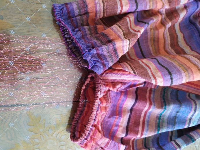 🌿2 poches 🌿taille et chevilles élastiques et ils sont fonctionnels 🌿marine, bleu, corail, bordeau, beige, jaune orange, rouge, vert d'eau, camel... 🌿taille unique mais pas d'étiquette 🌿présente 1 ou 2 fils tirés et quelques fils du motifs s'effilochent