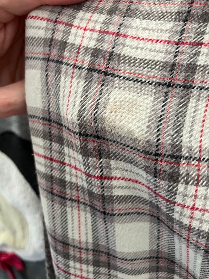 Pyjama deux pièces ( haut et bas ) . Taille S. Porté souvent. Quelques petites traces. Bon état Marque etam