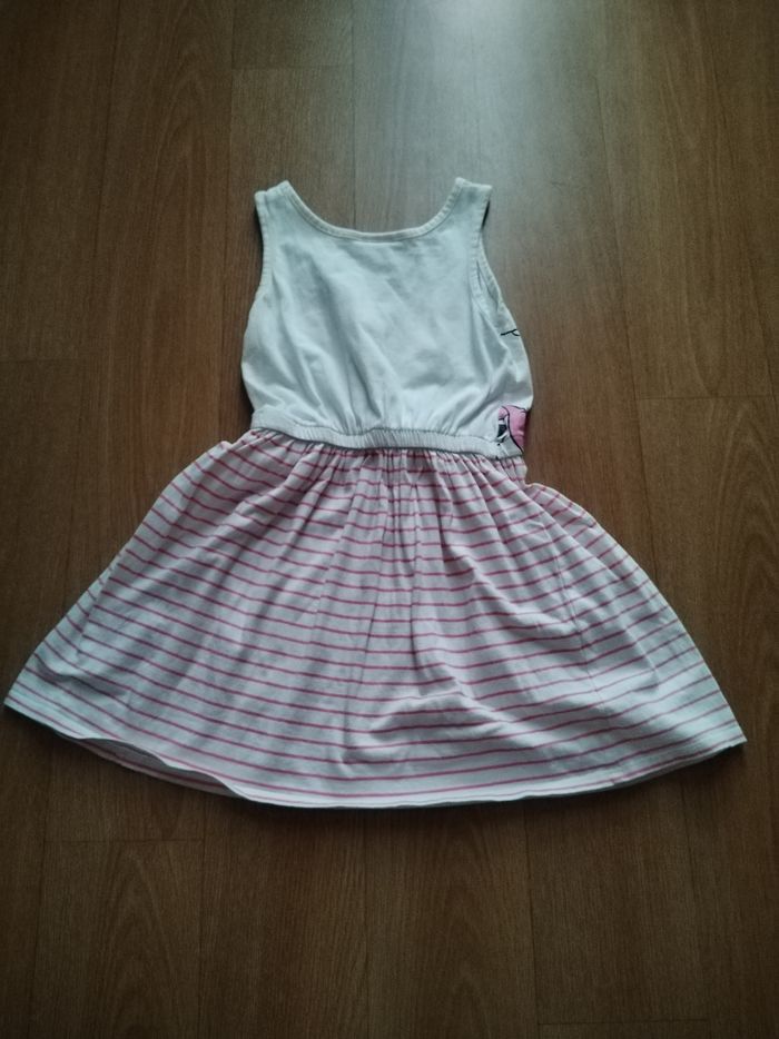 Bonjour Je vends une robe pour fille de la marque Disney . Elle est déjà utilisée . Une petite tâche de jaunisse . Couleur : Blanche avec des rayures et rose . Âge : 6 ans Prix : 1€ Merci