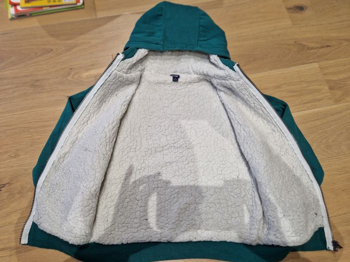 Bonjour, Je vends ce gilet sweat zipé Kiabi en très bon état. Taille 8 ans, vert, intérieur moumoute, il a été porté quelques fois mais reste en très bon état. Comme beaucoup de vêtements avec ce type de moumoute, les peluches s'incrustent dedans et dès que ça a été lavé 2/3 fois les peluches qui s'y mettent deviennent difficiles à enlever ce qui peut donner un effet de pas en bon état alors qu'il l'est ! Visible dans le 78 vers Marly-le-Roi. N'hésitez pas à faire un lot, réduction et frais de ports uniques !