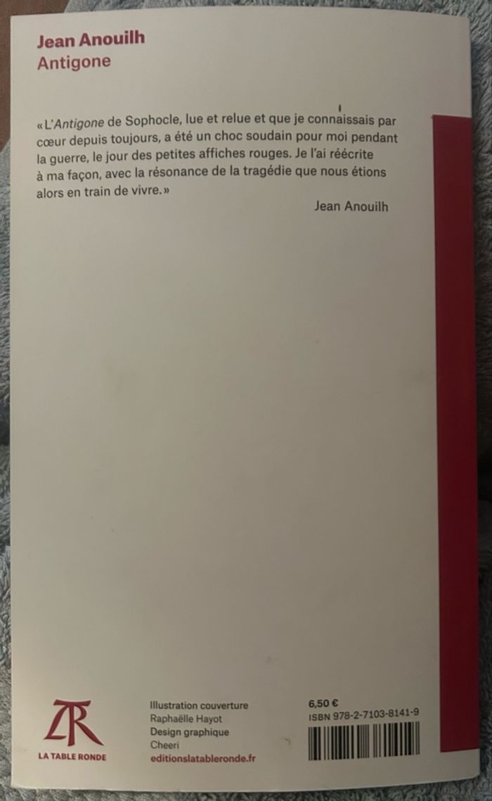 Je vends un livre Auteur: Jean Anouillh « Antigone » La petite vermillon En très bon état 1€