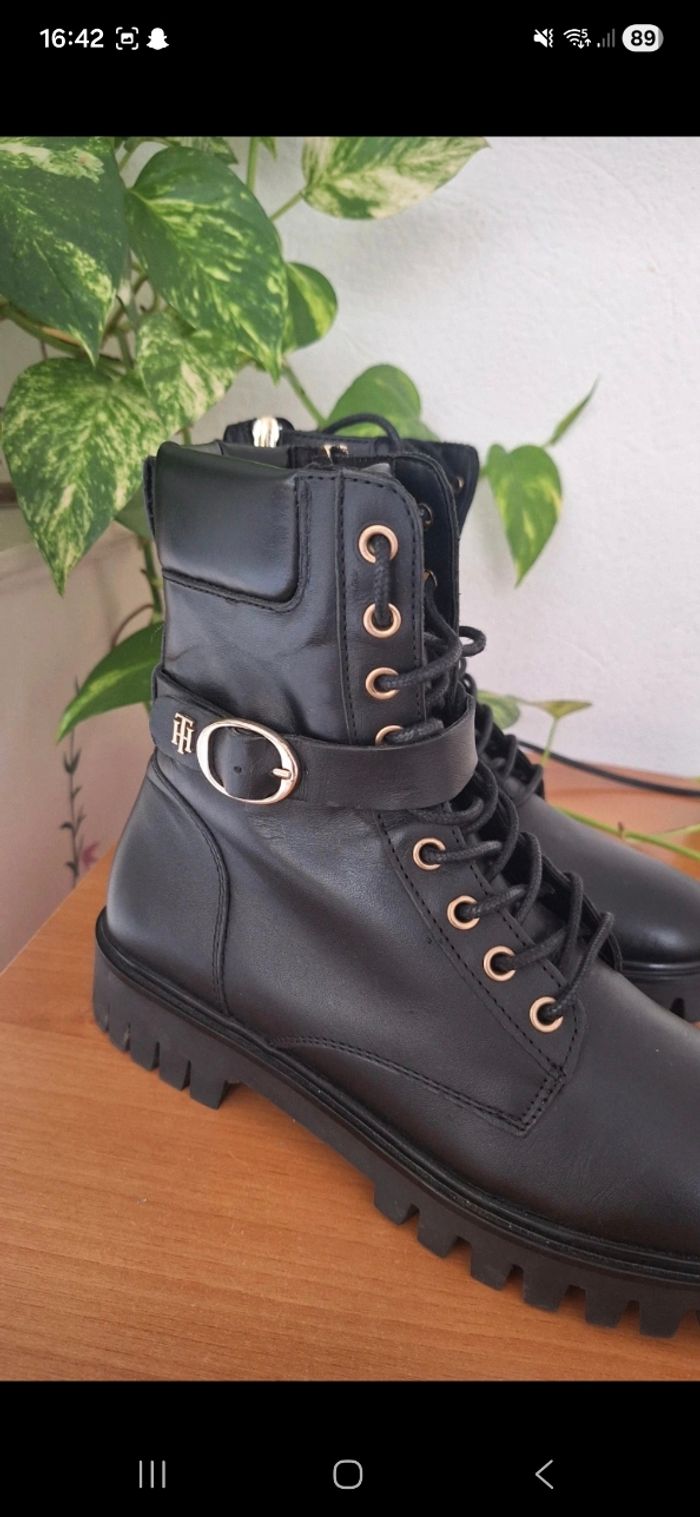 Bottines Tommy Hilfiger Buckle Lace Up Cuir Noir T38 - photo numéro 1