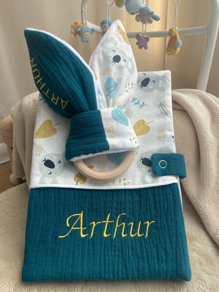 • Design : combinaison tissu koala et double gaze de coton uni • Matière : douce, résistante et agréable au toucher • Personnalisation : broderie du prénom au choix • Choix des couleurs : • Double gaze de coton uni : 21 couleurs (modifiable selon vos envies) • Broderie : plus de 80 couleurs Un protège carnet de santé unique, personnalisé avec soin, idéal pour accompagner bébé lors de tous ses rendez-vous ou comme cadeau de naissance original et utile.