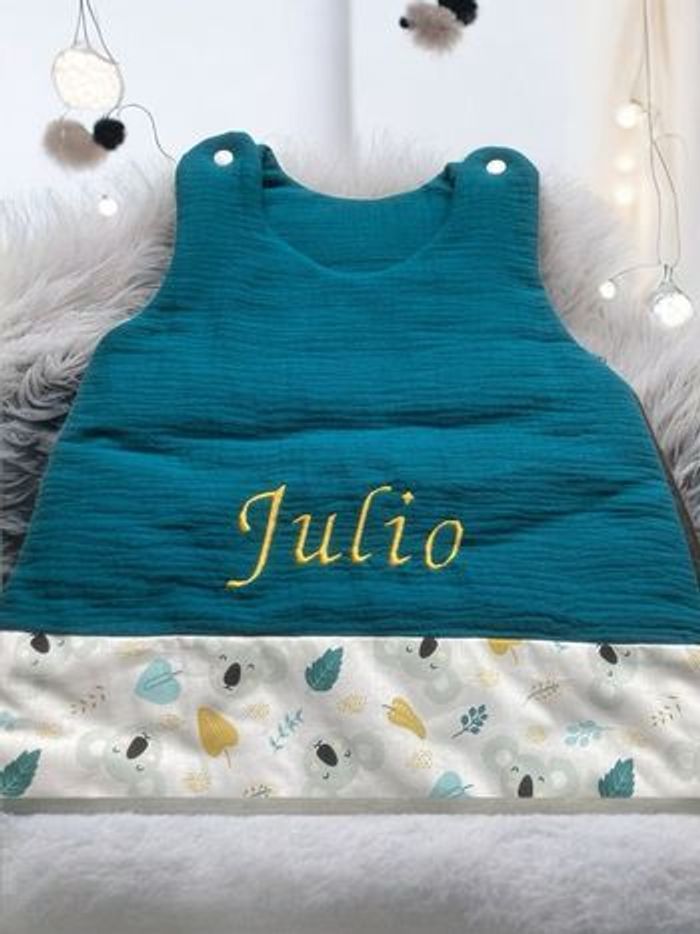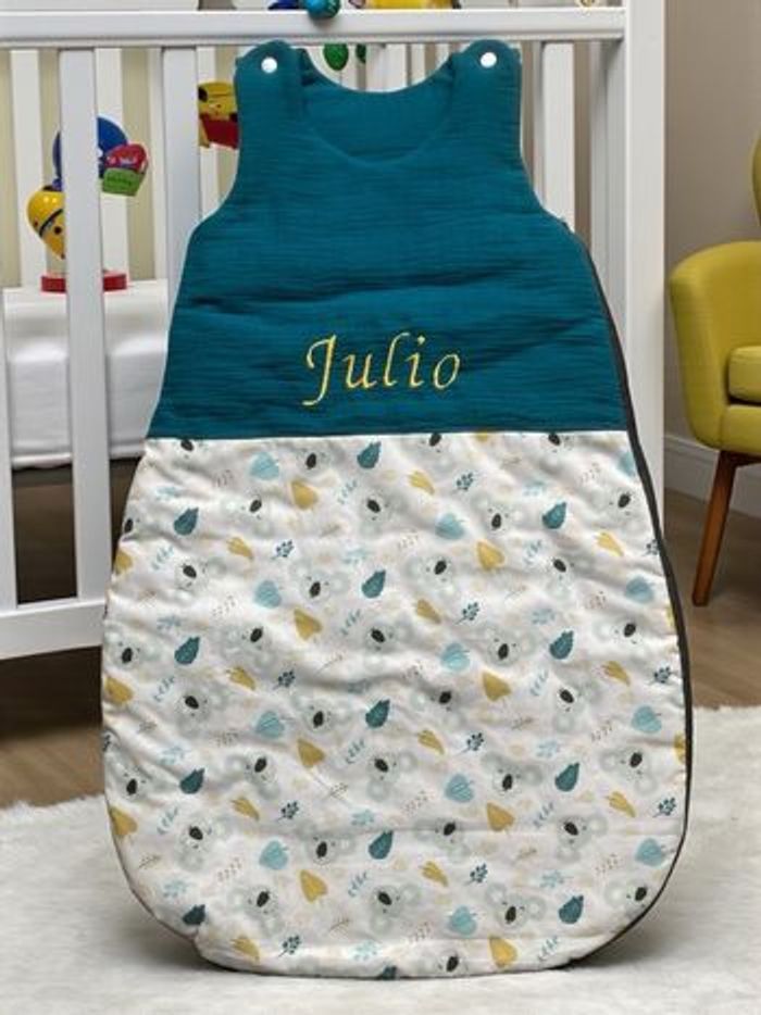 Taille disponible 0/3 mois : 30€ 3/6 mois : 35€ 6/18 mois : 45€ Douce gigoteuse été en coton Oeko-Tex et double gaze de coton, idéale pour les nuits légères de bébé. Broderie incluse 🌿 Il existe d’autres combinaisons de couleurs pour s’associer à ce jolie motif