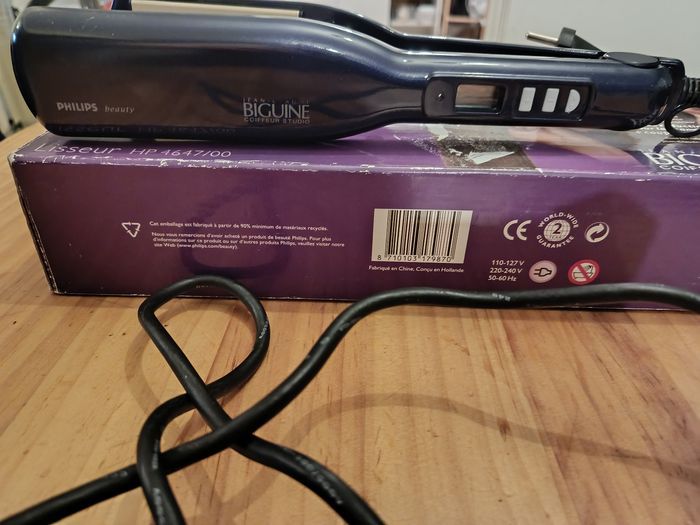 Vend lisseur Phillips plaque large En bon état Vendu avec boîte D'origine mais vendu sans les notices d'utilisation Prix : 6€ Envoie rapide et soigné