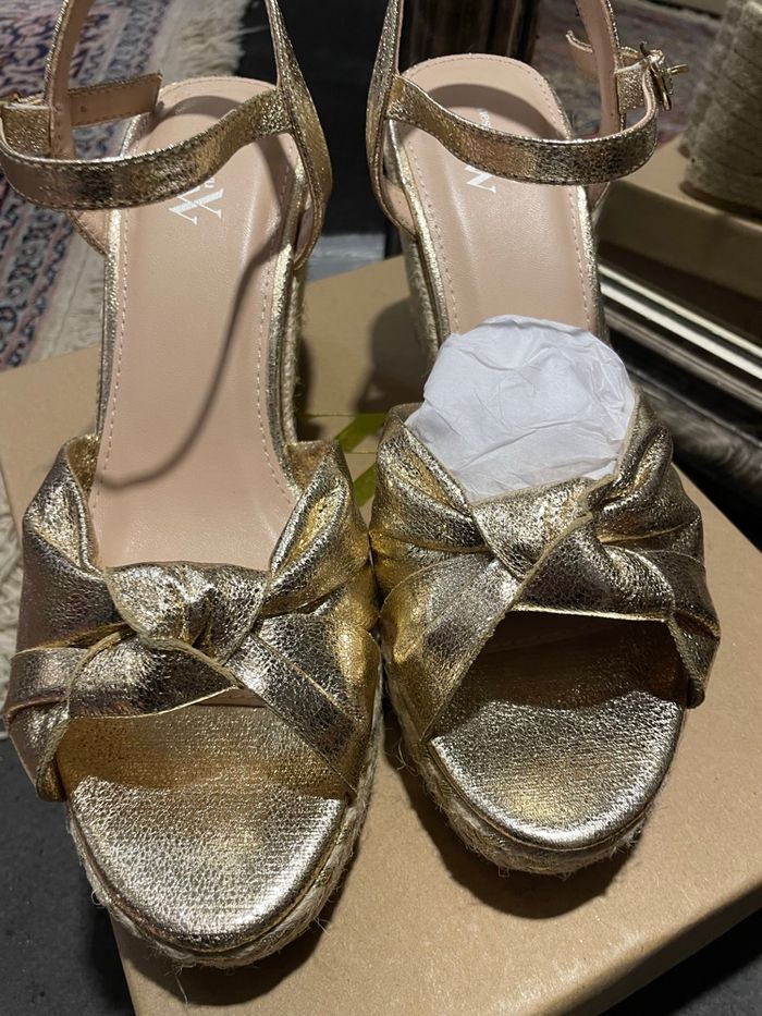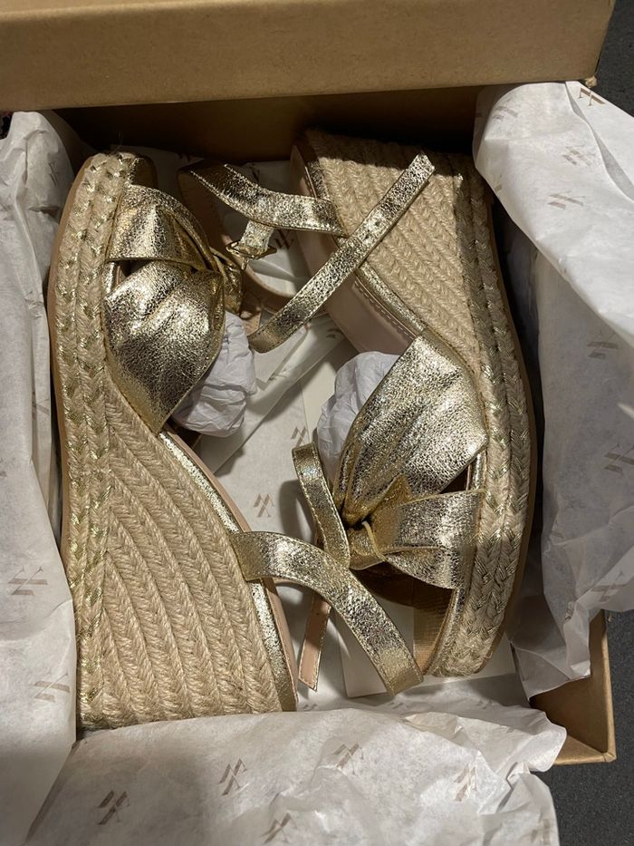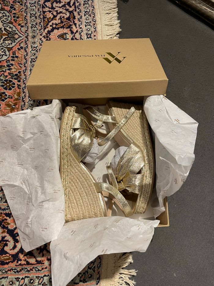 Compensée Vanessa Wu dorée pointure 40 Neuves dans leur boîte d’origine Prix boutique 65€ Prix sacrifié 25€ Envoi rapide et soigné