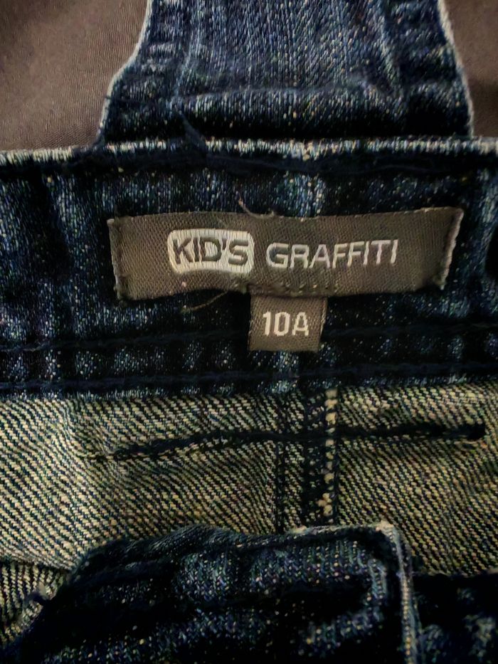 Robe salopette de marque Kid's Graffiti, taille 10ans, couleur bleu foncé, en bon état général, peu porté