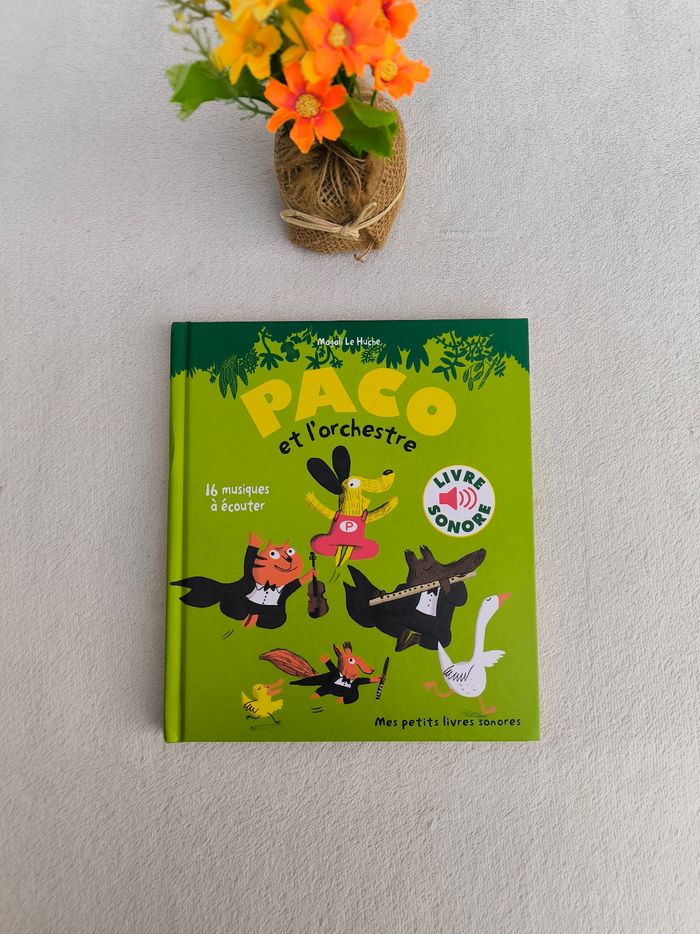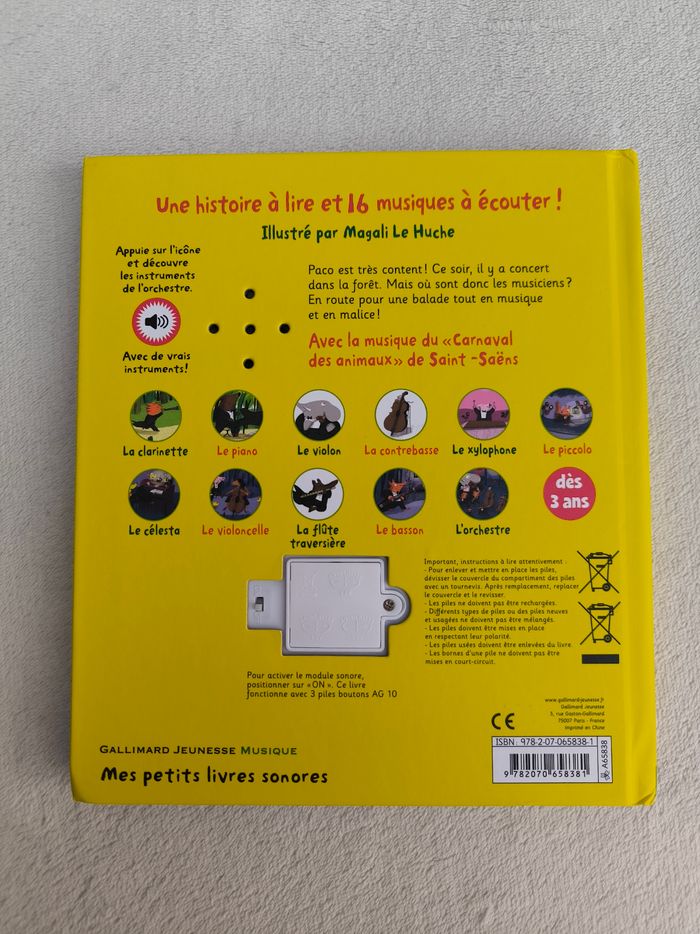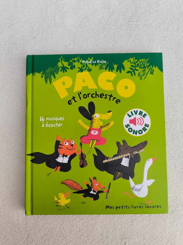 Livre sonore Mes petits livres sonores : Paco et l'orchestre Éditions Gallimard Jeunesse Musique À partir de 3 ans • Une histoire à lire • 16 musiques à écouter -> Clarinette, piano, violon, contrebasse, xylophone, piccolo, célesta, violoncelle, flûte traversière, basson, orchestre • Intérieur du livre en très bon état ⚠️ D'autres livres dans la même collection Fonctionne Piles incluses Comm neuf #evelyne_livres