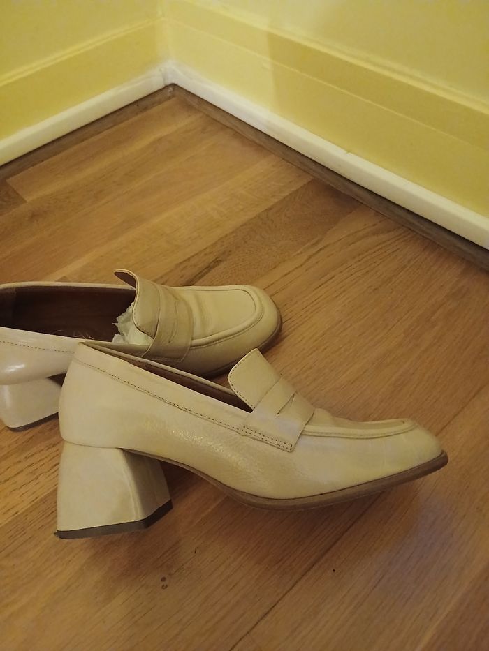 Mocassins, pointure 37, marque bocage, collection printemps été, matière tout cuir intérieur et extérieur, semelle élastomère, hauteur talons 5 cm, couleur crême, très bon état