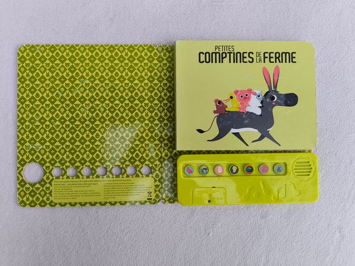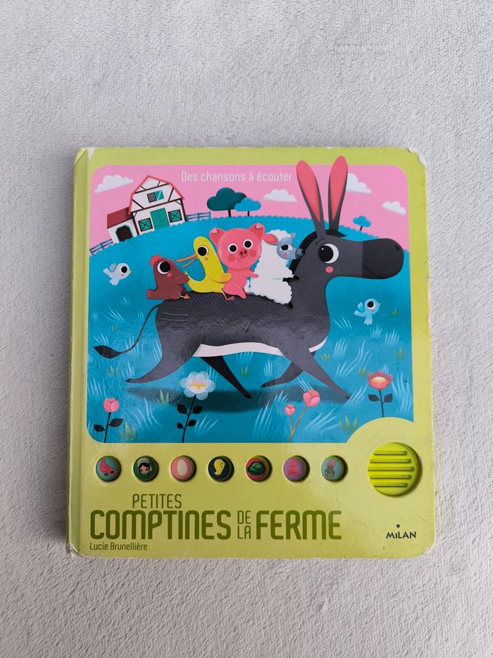 Livre sonore musical Des chansons à écouter : Petites comptines de la ferme Éditions Milan • Pages cartonnées • 7 chansons : -> Une poule sur un mur -> Il était une bergère -> Un petit cochon pendu au plafond -> Un canard -> Savez-vous planter les choux ? -> Mon âne -> Un petit lapin • Intérieur du livre en très bon état • Coins, couvertures et arêtes abîmés ⚠️ D'autres livres dans la même collection Fonctionne Piles incluses à changer En bon état #evelyne_livres