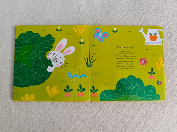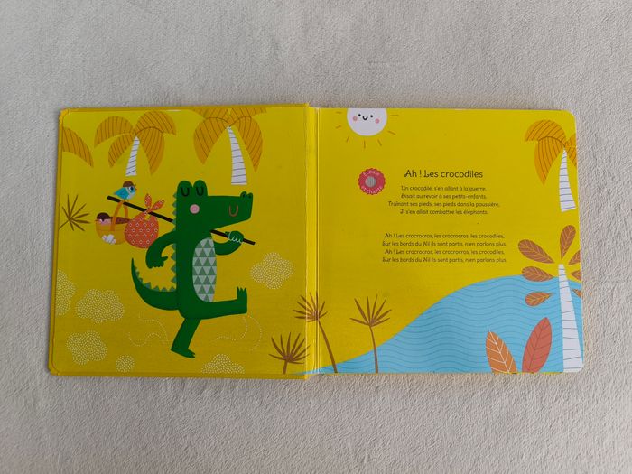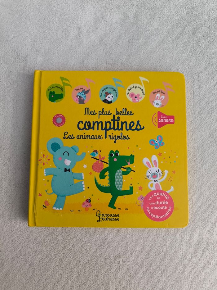 Livre sonore Mes plus belles comptines : Les animaux rigolos Éditions Larousse Jeunesse • Pages cartonnées -> Ah ! Les crocodiles -> Mon âne -> Une araignée sur le plancher -> Un éléphant qui se balançait -> Mon petit lapin • Intérieur du livre en très bon état • Tranches intérieures avec pliures • Coins légèrement abîmés, bord abîmé ⚠️ D'autres livres dans la même collection Fonctionne Piles non incluses En très bon état #evelyne_livres