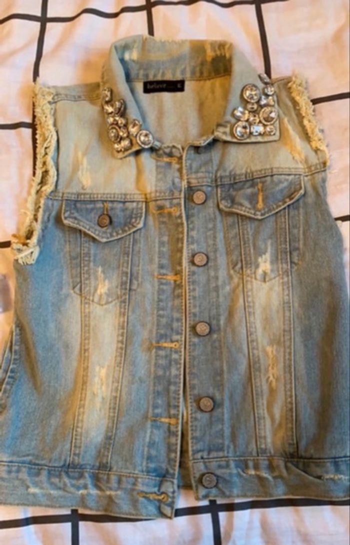Veste sans manche en jean taille S - photo numéro 3