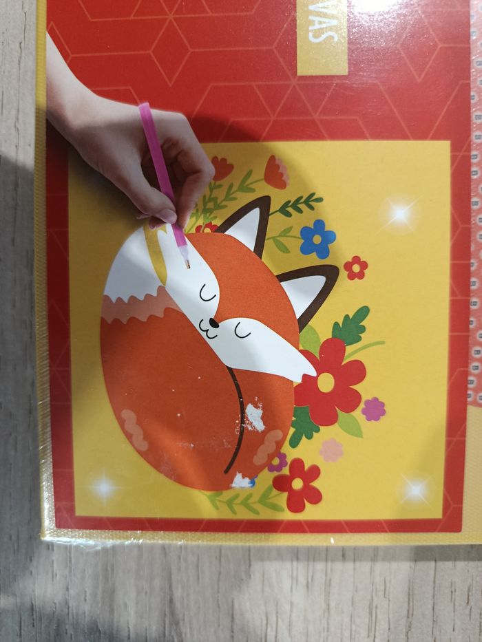 Toile Diamond painting - Renard, à partir de 6 ans Dimension 27*27 cm Produit neuf sous emballage. Livrée avec les perles, ainsi que le support et le crayon. Toile déjà fixée au support bois. Cette toile permettra d'embellir la chambre de vos enfants, après la satisfaction de les avoir réalisé eux-mêmes.