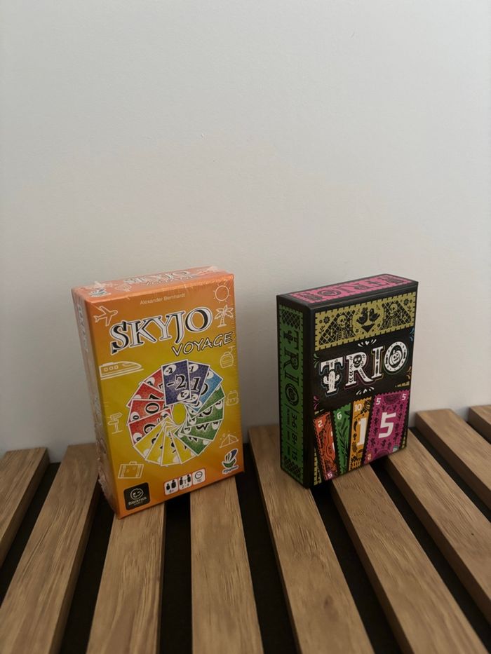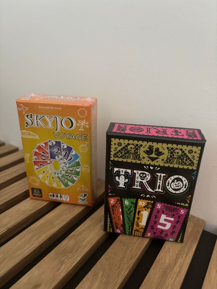 Lot de deux jeux de société neufs : Skyjo Voyage Trio (notice en anglais)