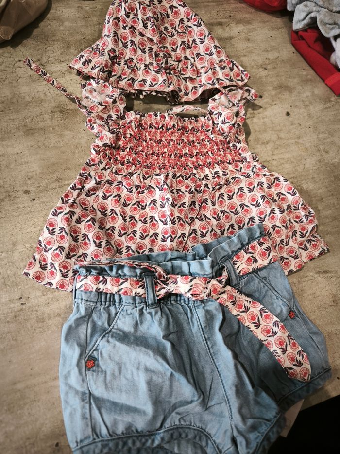 Ensemble sergent major Très bon état Tshirt short et chapeau Petit noeud sur le chapeau Taille 3 mois