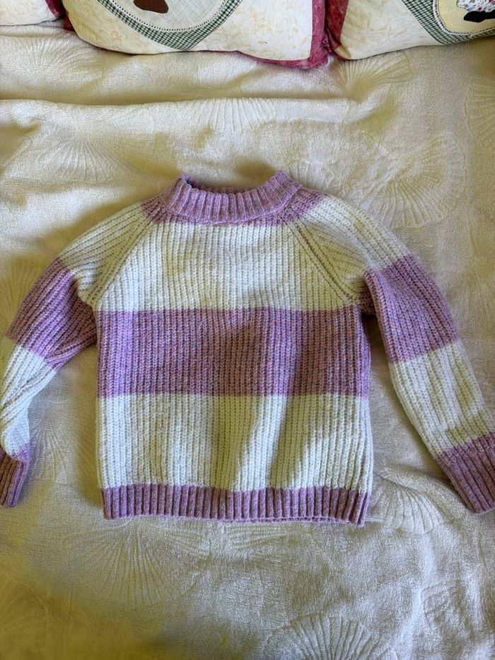 pull blanc et violet kiabi comme neuf taille 4 ans