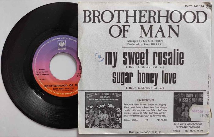 🎵 Brotherhood of Man - My sweet Rosalie 🎵 Vinyle 45T Edition 1976 – Vogue – [URL masquée pour votre sécurité]. 140 114 Pochette et disque bon état Face A: My sweet Rosalie 2'35 Face B: Sugar honey love 2'56 .