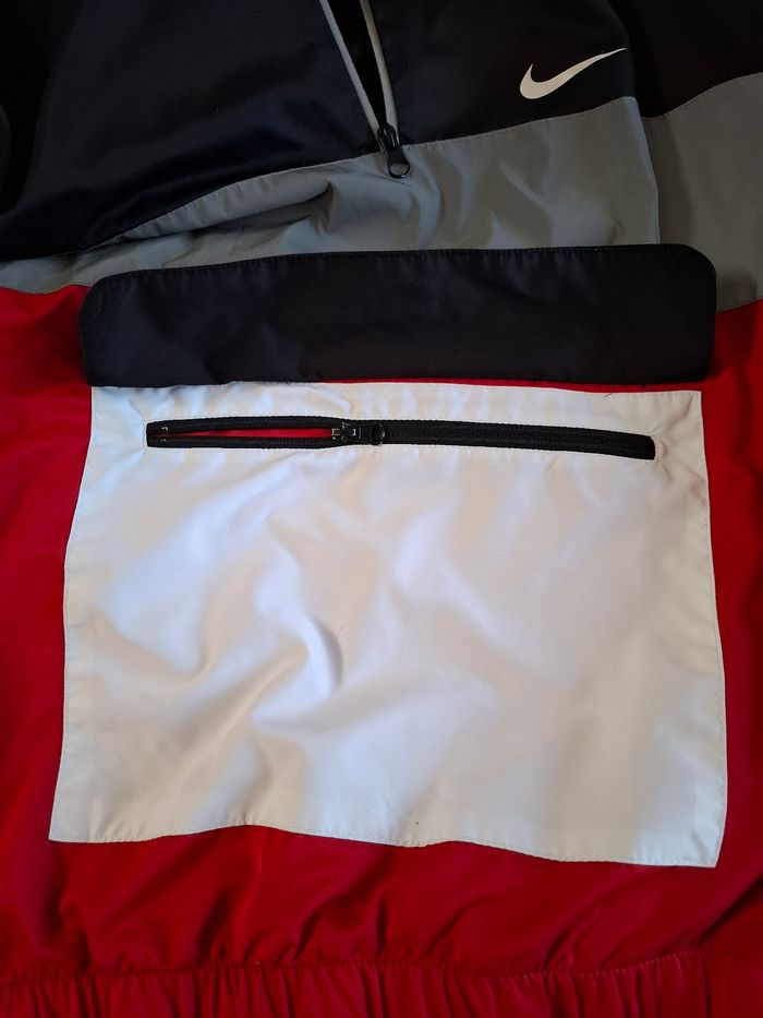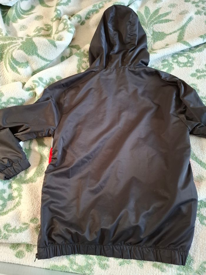 Coupe vent avec capuche, poche devant, coloris noir rouge blanc, taille S, sans marque,