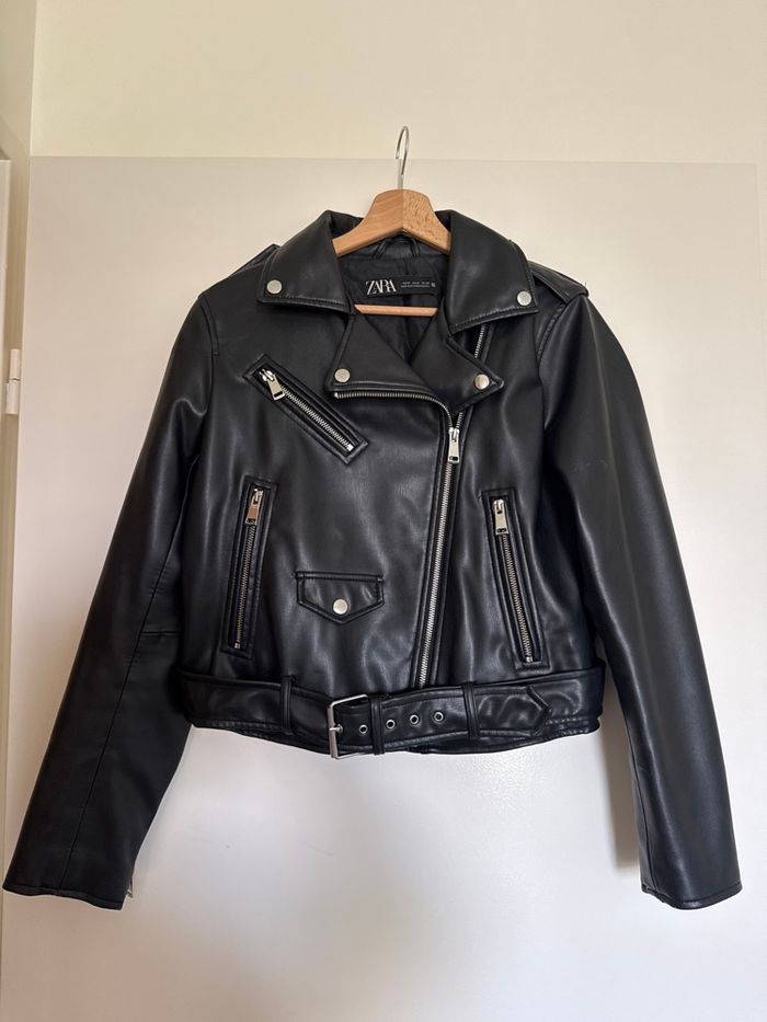 Veste en cuir noir Zara  Coupe tendance  Très bon état - photo numéro 1