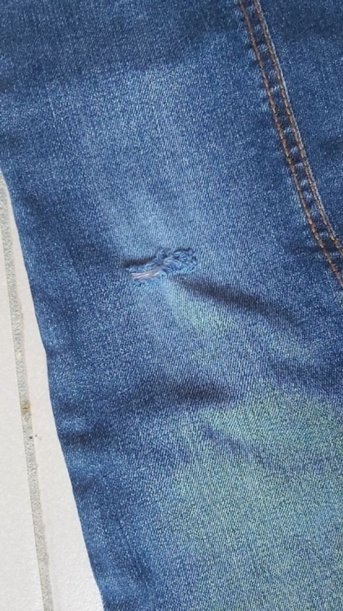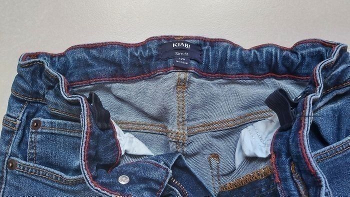 Jeans slim fit Taille 12 ans Taille réglable Fermeture par bouton Trou sur un genou Couleur bleu Marque Kiabi