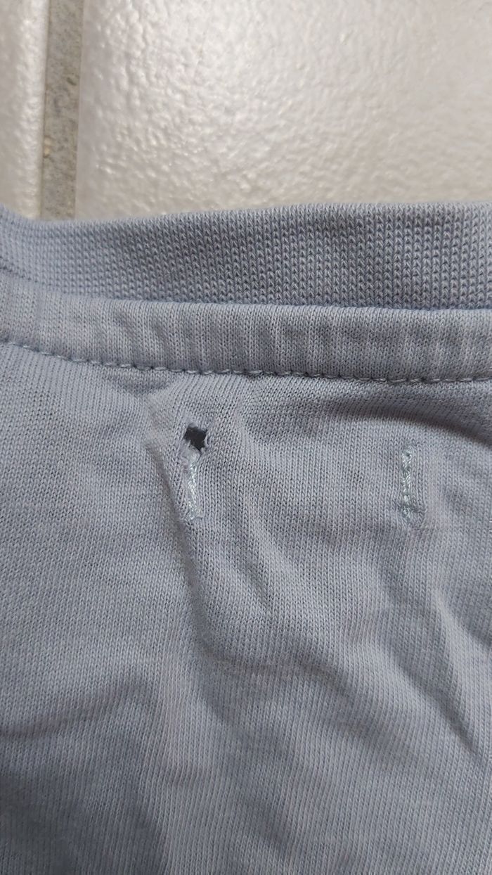 Tshirt manche courte Taille 8 ans Trou niveau attache etiquette magasin Couleur bleu clair à motif Marque Kiabi