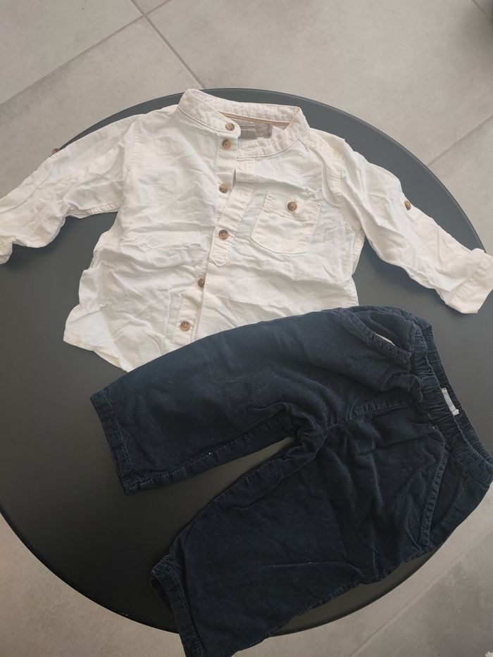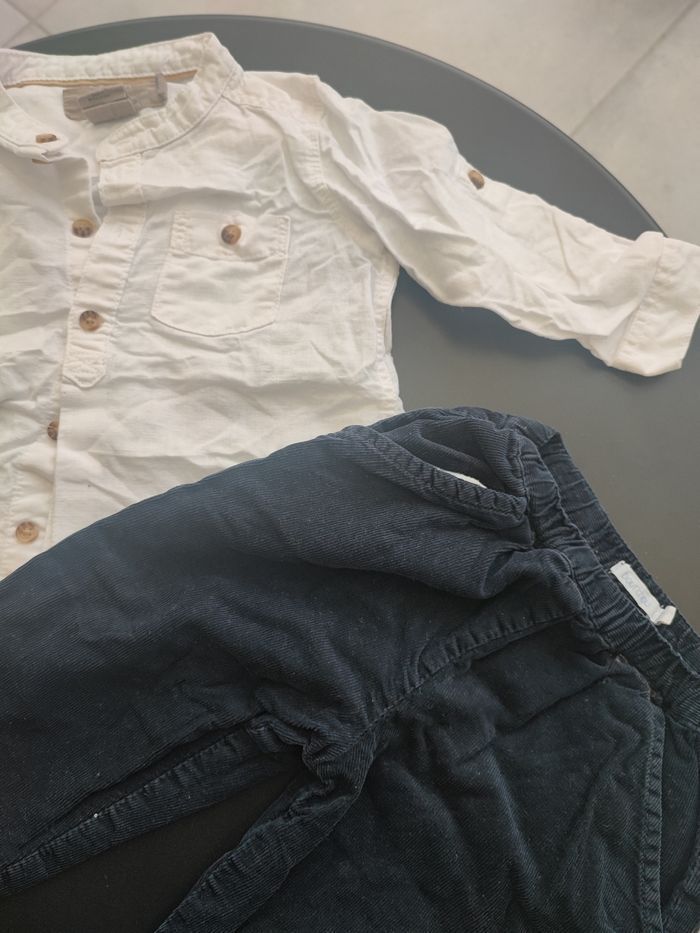 Chemise blanche de chez H&M taille 6/9 mois Pantalon velours bleu marine 9 mois bout chou