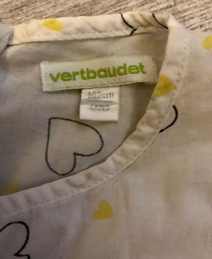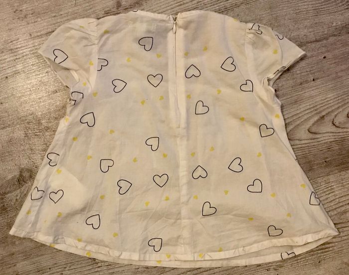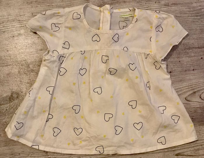 Haut tunique à manches courtes de la marque Vertbaudet Taille 4 ans Couleur blanc motif coeurs Légères traces d’utilisation Occasion, bon état