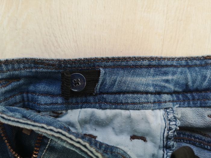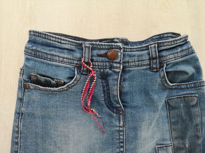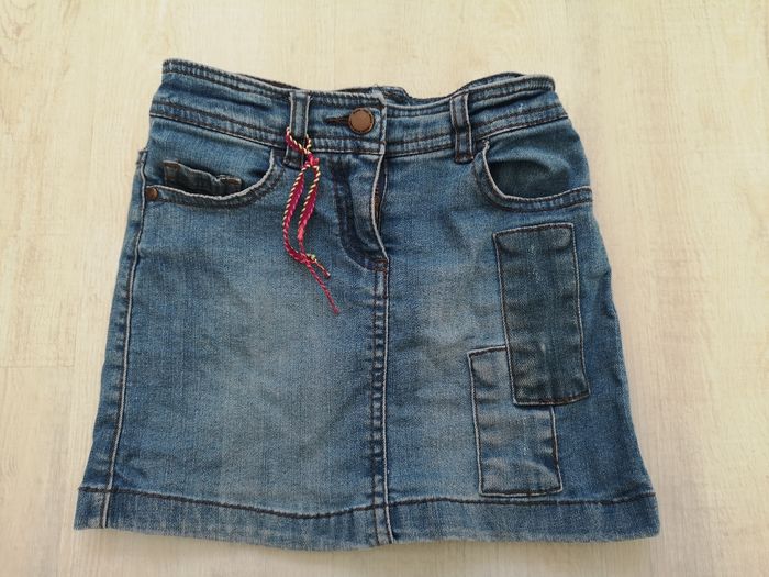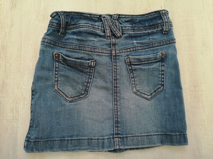 Je propose à la vente une jupe en jean, couleur jean bleu, avec poches avant et arrière. Réglable à la ceinture.
