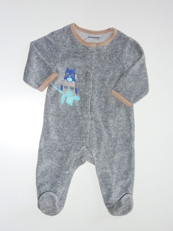 Pyjama d'occasion en excellent état de marque VERT BAUDET, en velours tout doux, gris, orné d'un motif tout doux.