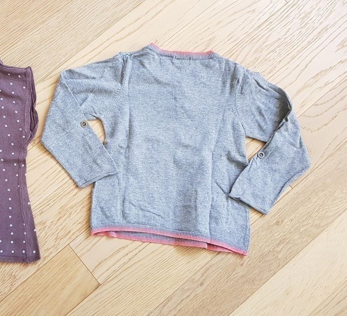 Pull pour fille, en bon état - Marque : Obaïbi - Taille : 3 ans (94 cm) - Coloris : gris, liseré rose - 2 petites poches devant, boutons au col, possibilité de retrousser les manches grâce à 2 boutons aux 3/4 - Sans trou ni tache - Maison non fumeur et sans animaux #elfedneiges3ans #elfedneigesfille