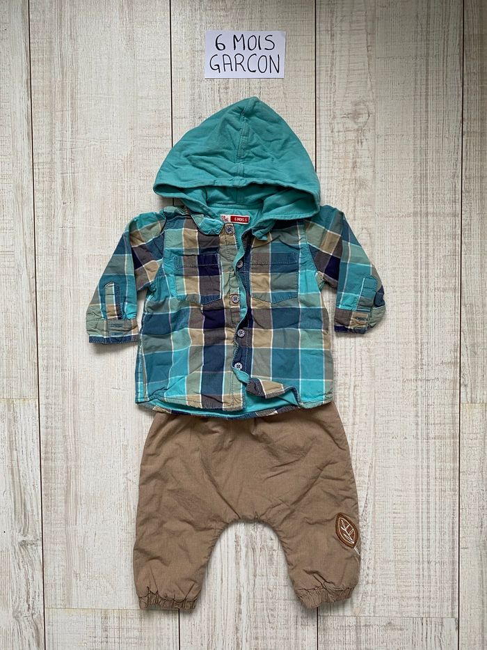 Ensemble Motif : carreaux, feuille Matière : coton Âge : 6 mois / 67 cm Utilisation : bouton devant Marque : Du Pareil Au Même #tiffanie4439_6mois