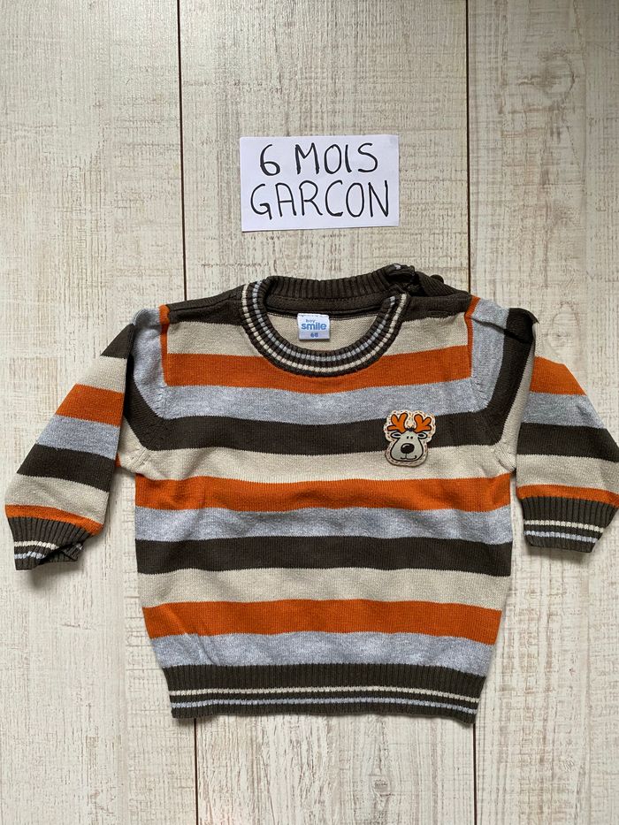 Pull à manches longues Motif : cerf, rayures Âge : 6 mois / 68 cm Utilisation : passage par la tête Marque : Boy Smile #tiffanie4439_6mois