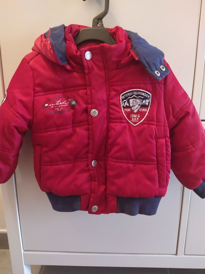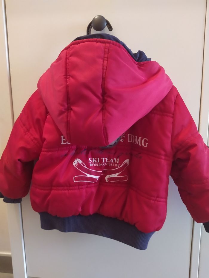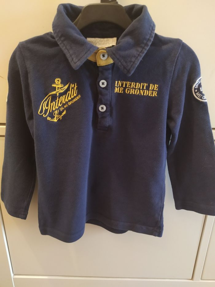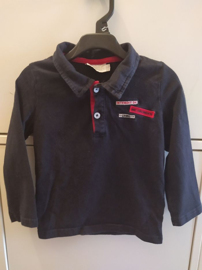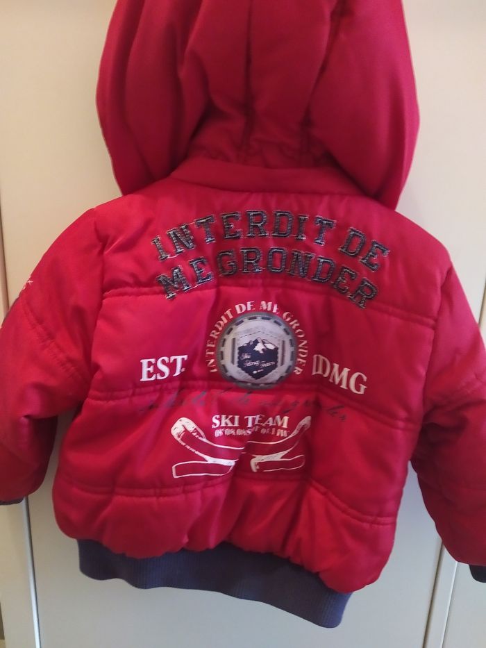 Vends l Lots de vêtements comprenant une doudoune en 18 mois qui taille grand 2 jeans tour de taille ajustable par élastique en 2 ans, 2 polos manches longues en 2 ans et une écharpe et bonnet taille unique