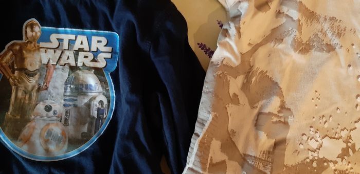 Lot de 2 tee-shirts en 4 ans. Dont 1 stars wars. Légères bouloches. Non repassé.