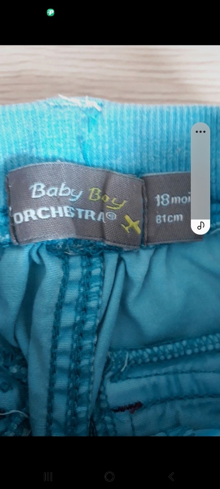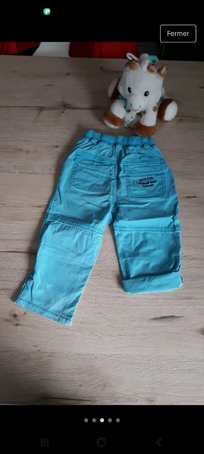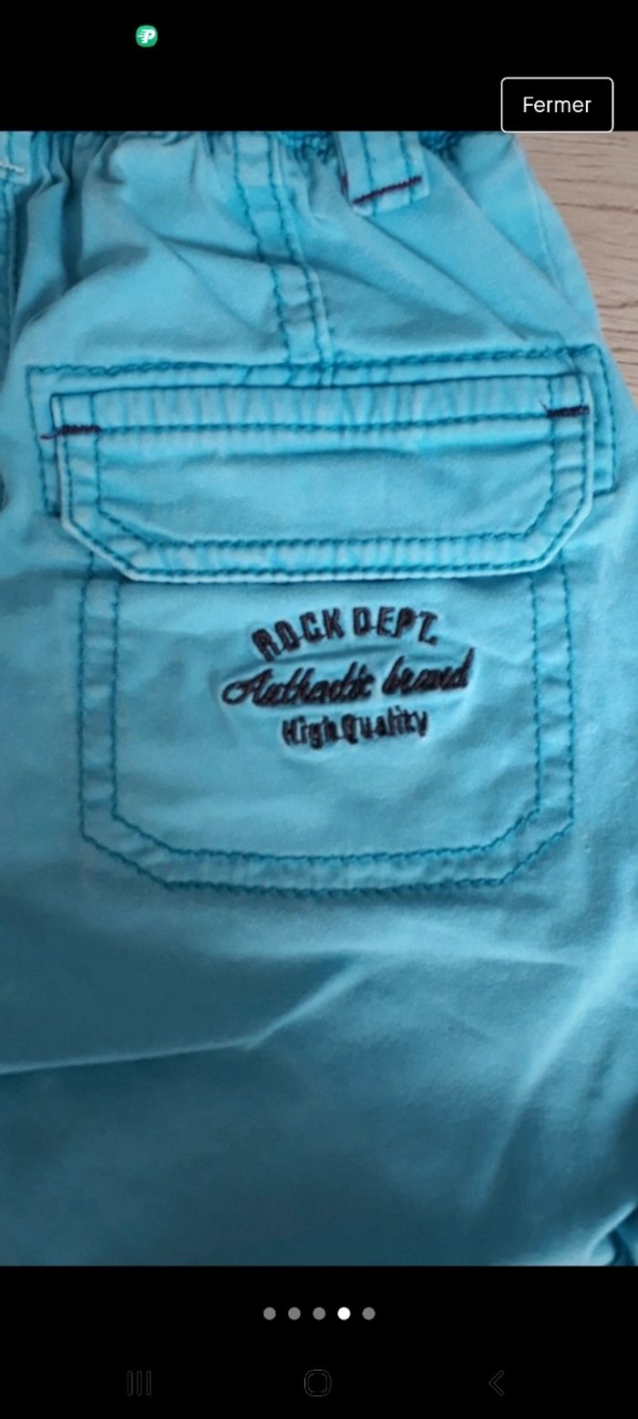 Pantalon bleu 2 poches devant et derrière Possibilité de remonter les pattes pour en faire un pantacourt Taille élastique et resserer au besoin avec le cordon
