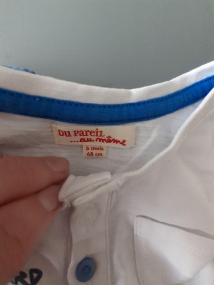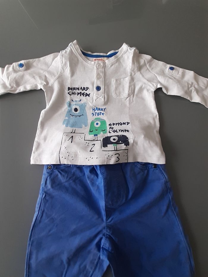 6 mois - 68 cm Pantalon bleu T shirt blanc à motif manches longues Du pareil au meme