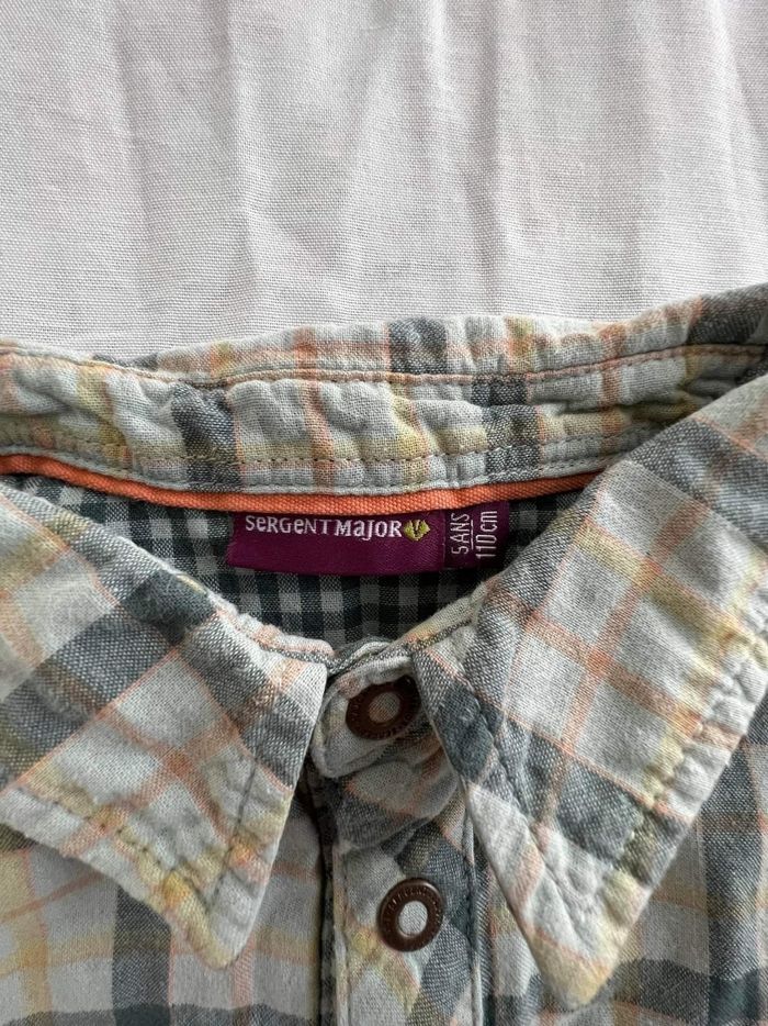 Chemise a carreaux kaki, marque Sergent major. Taille 5 ans, 110cm. Excellent état