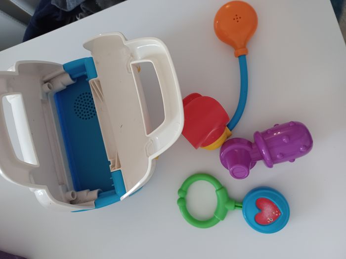 Malette du docteur avec 3 accessoires en bon état La malette fait du bruit. Il y a un accessoire un peu abime