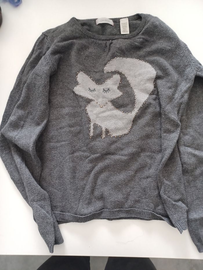 Pull léger gris avec renard dessus en bon état Taille 8 ans