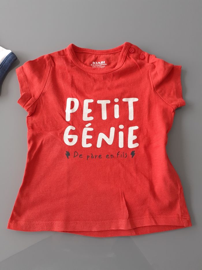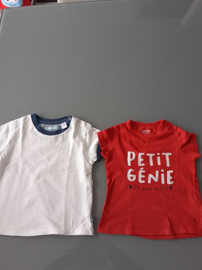 Lot de 2 t shirt 9 mois Manches courtes 1 blanc obaibi 1 rouge kiabi
