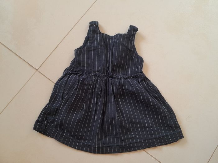Robe longue noire avec rayures fines blanches, petites bretelles.