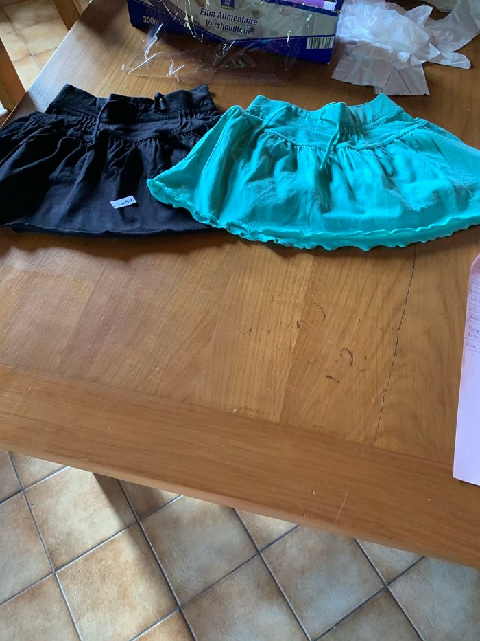 2 jupes coton, 4 ans, TBE, noire et menthe, marque Palomino