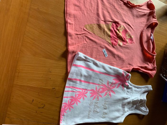 2 hauts été, 4 ans, TBE, dont 1 sans manches, Blanc /rose , kidkanai