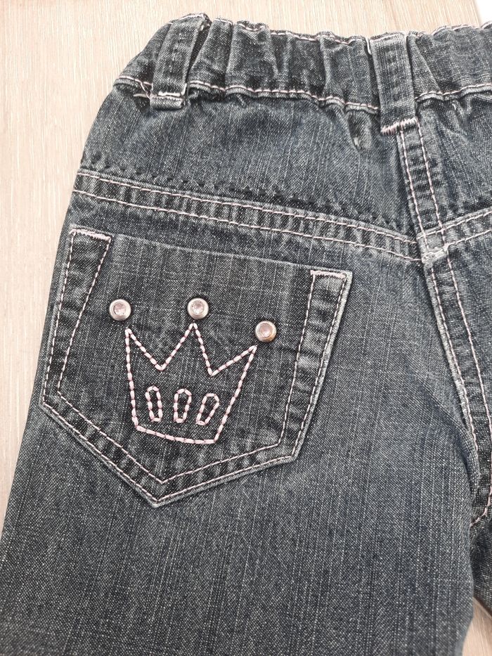 Jean gris/noir Couture rose 2 poches devant et 2 derrière Bouton Pressions Taille 12 mois