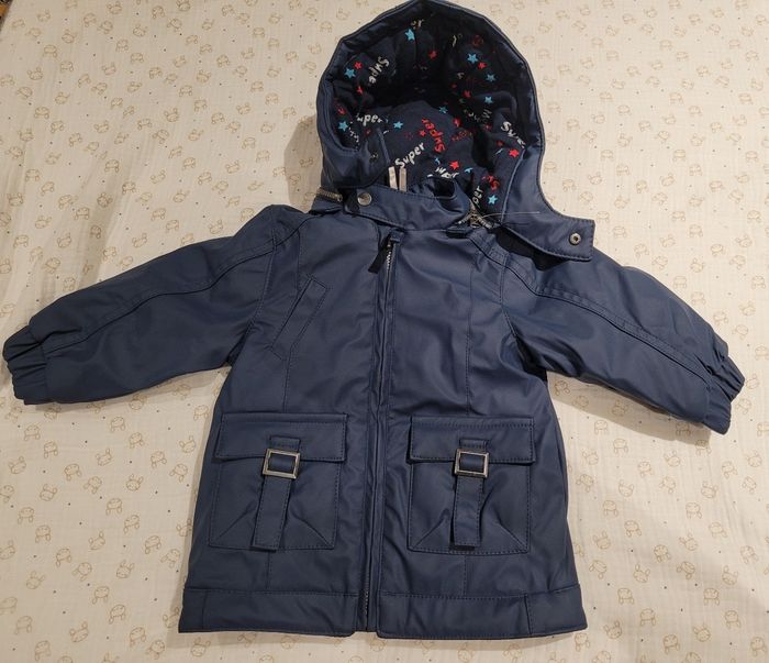 Manteau bleu marine à capuche amovible. Orchestra 12 mois.