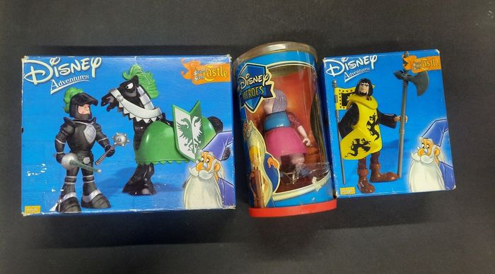 Disney heroes Famosa The sword in the stone Lot comprenant 1 chevalier et son cheval 1 sorcière 1 chevalier jaune État voir photos , boîte scellée mais abîmées E3