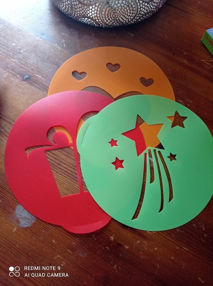Lot de 3 pochoirs en bon état, quelques rayures.