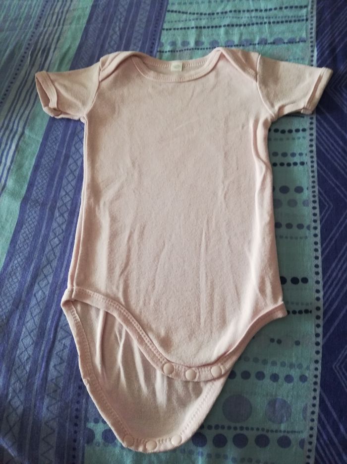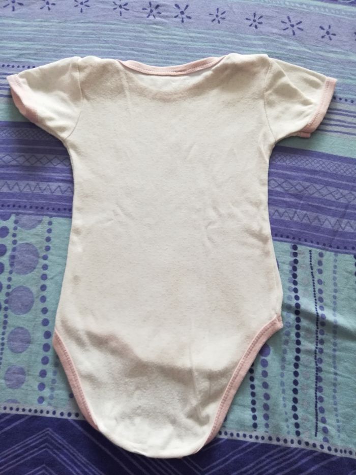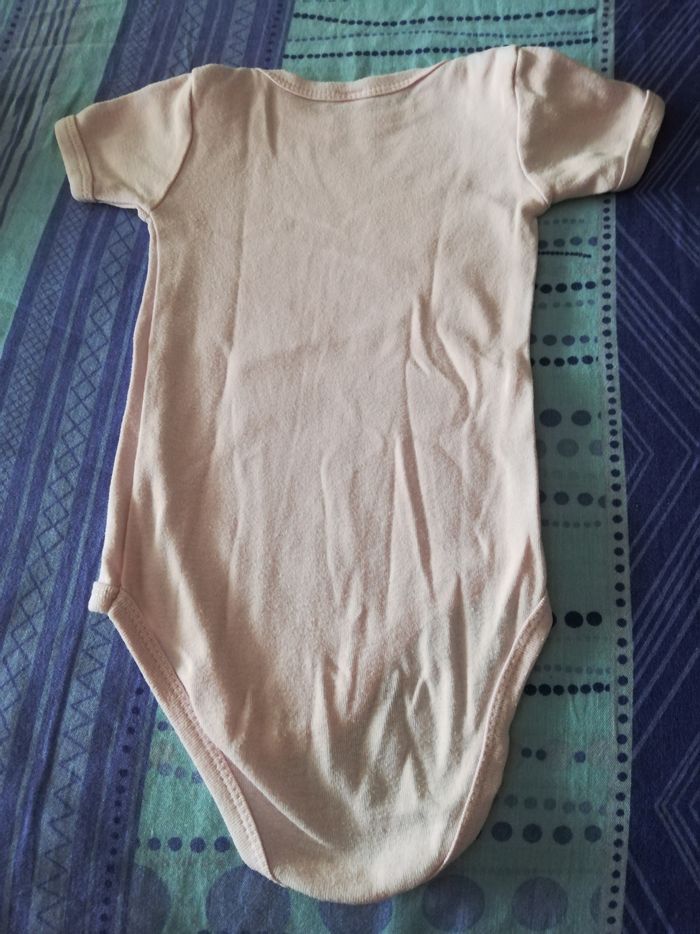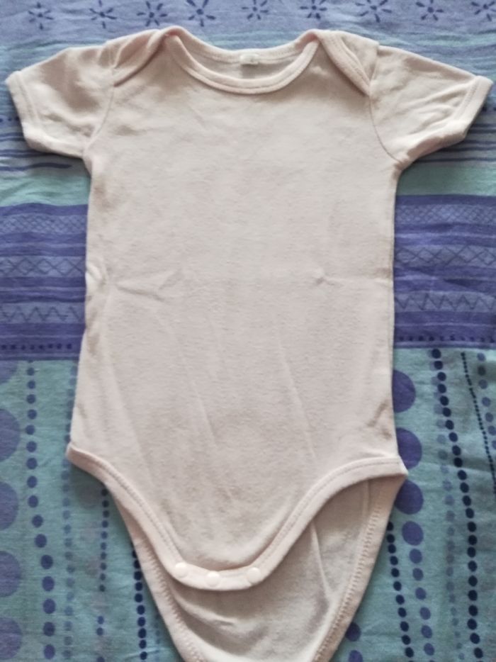 Lot de 3 bodies manches courtes fille 12 mois 100 %coton, couleur rose pâle et blanc, bon état.
