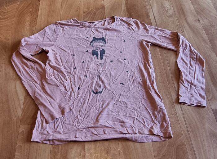 t-shirt manche longue kiabi rose imprimé taille 12ans - photo numéro 1